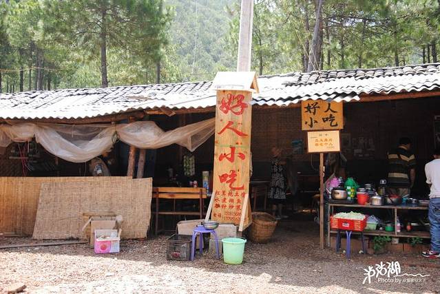 这就是好人小吃的门面,很多驴友强烈推荐的,老板人很不错,菜品味道也非常好,他们家的主打菜品就是松茸炖鸡汤、松茸湖鱼汤、蜜汁番茄,30元一客,随便吃,吃完门口还有老板赠送的苹果随便拿,确实是好人,而且味道相当不错,鸡汤全靠松茸提鲜,老板说在他们店里找不出一丁点鸡精味精,蜜汁番茄也可口,因为是本地阳光晒足了的番茄,味道自然非同一般。