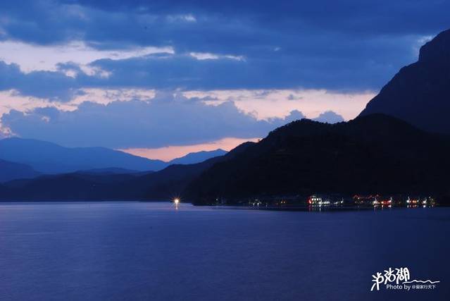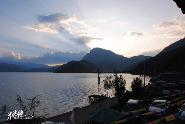 晚霞中的泸沽湖。