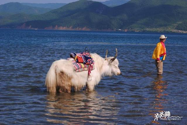 湖周长约五十公里,在湖的北岸,屹立着一座秀丽的“格姆”山,意思是女山。摩梭人把她视为女神化身。从南边远远隔湖望去格姆女山又像一头昂首而卧的狮子,人们又叫它为狮子山。这里的一山一水,一草一木,都被赋予女性形象的神话,成为我们当代名副其实的“女儿国”。