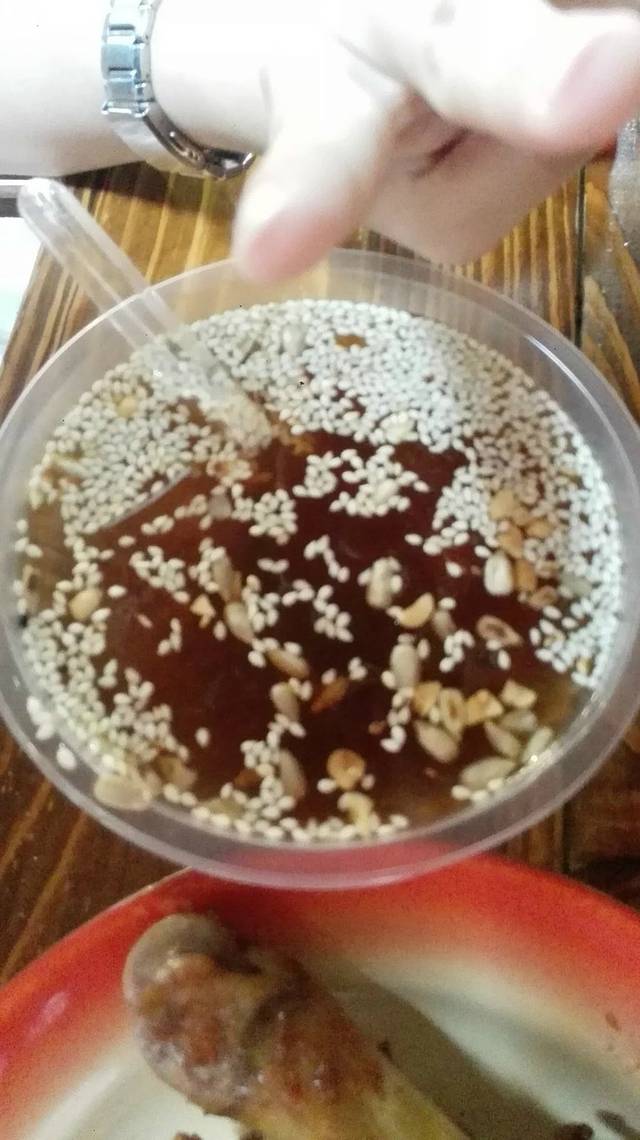 玫瑰冰粉,上面漂浮着芝麻和瓜子