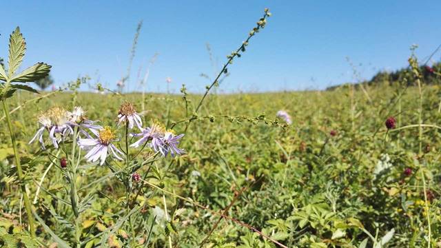 来到百花坡,花期已过,绿茵茵的草地里虽只点缀着零星花朵,却也是美的。