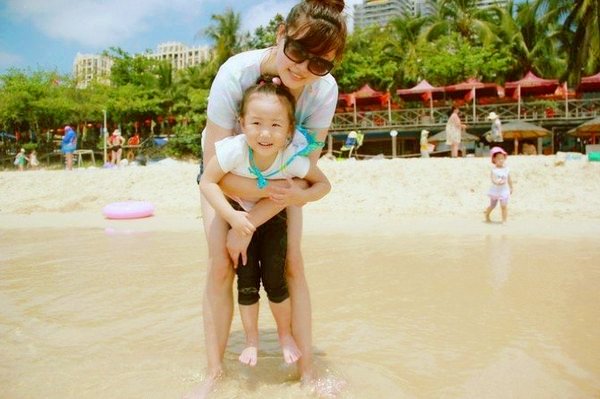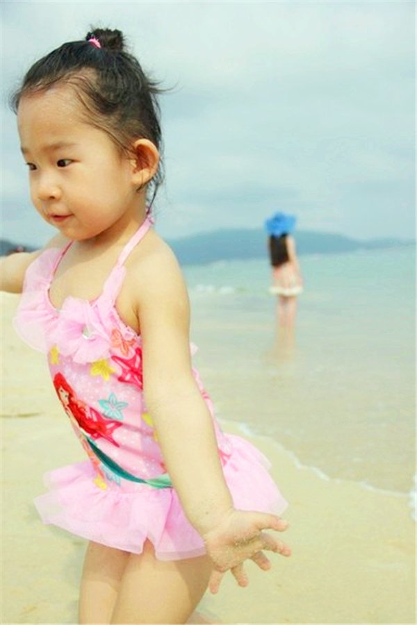 没有让孩子在大海里游泳浪大水也凉而且很晒。
