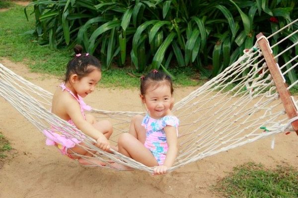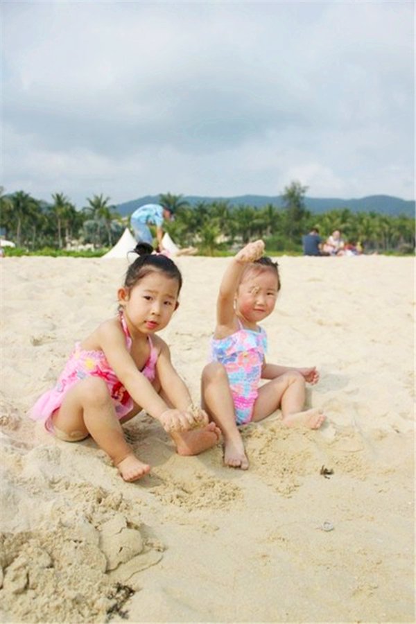 小家伙开始不敢踏浪,后来带他们亲身体验之后就疯狂的爱上踏浪了,不停的去追浪花,或者跳起来踢打水花,玩累了就坐在沙滩上铲沙子,白嫩的小脸在烈日下不一会儿就晒得红扑扑的。妈妈们一定要记得多给孩子喝水,多吃水果,孩子不上火就不会生病,这次两个宝宝都很适应当地的环境,吃得好睡得也香。让家人省心不少。玩的时候一定不要直晒在有遮挡的地方玩,屁股坐的沙子最好是温凉的,太热的沙子孩子容易起痱子,痱子粉和驱蚊液一定要带,虽然我们去的季节蚊虫不算多,但公寓的蚊子还是会有。