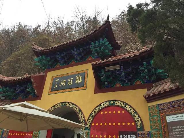 今天是开车来的,比起前一天的完全徒步,感觉真的是好幸福。这个山门的旁边就是停车场。图片的右侧可以看到电瓶车和卖电瓶车票的小房子。由于前一天走路走怕了,不论有多远,我们将果断选择坐车。