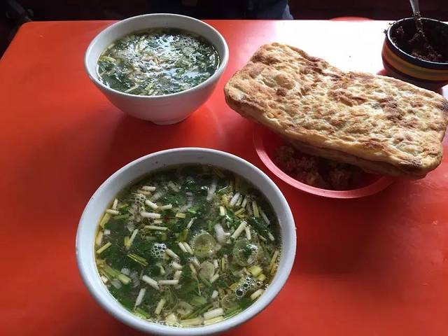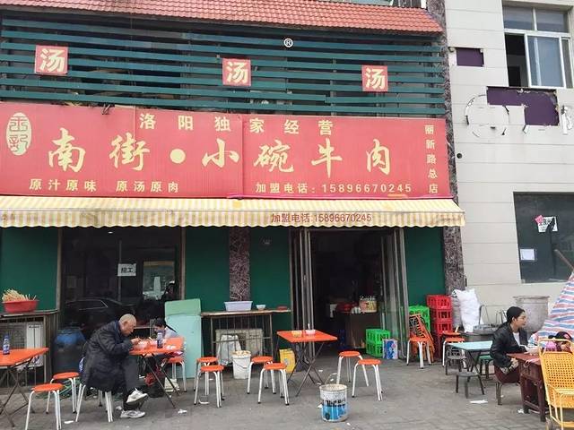 这是洛阳的南街小碗牛肉,地址在涧西区的丽春路。洛阳四处也都有分店,不过据说是有的分店好喝,有的分店不好喝,看大家的个人喜好吧。不过作为地地道道洛阳人的男票说这家最好喝。我只喝过这一次,味道还不错,一大碗汤,配的是一整张的烧饼。外地人开始可能吃不惯,感觉烧饼很硬,不过人家的烧饼就是泡在汤里吃的啊,那样就不硬了啊。