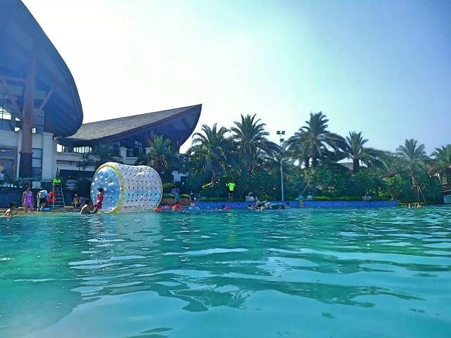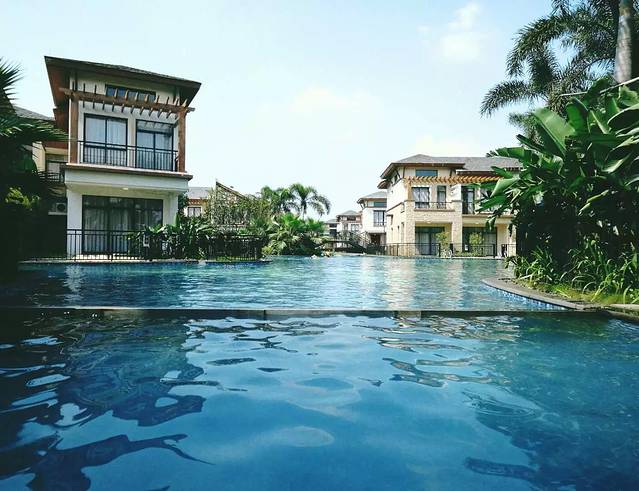 我们只是去那里游泳,顺便消遣时间。游泳门票:48块一个人。里面全是一栋栋的别墅,每间别墅都有自己的停车位。前门是路,后门一出来就是泳池。外观装修的很美,但是别墅区没有完全完工。