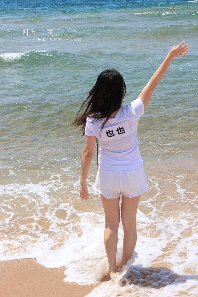 海浪,沙滩,白T,有的是满脸的喜悦和激动。