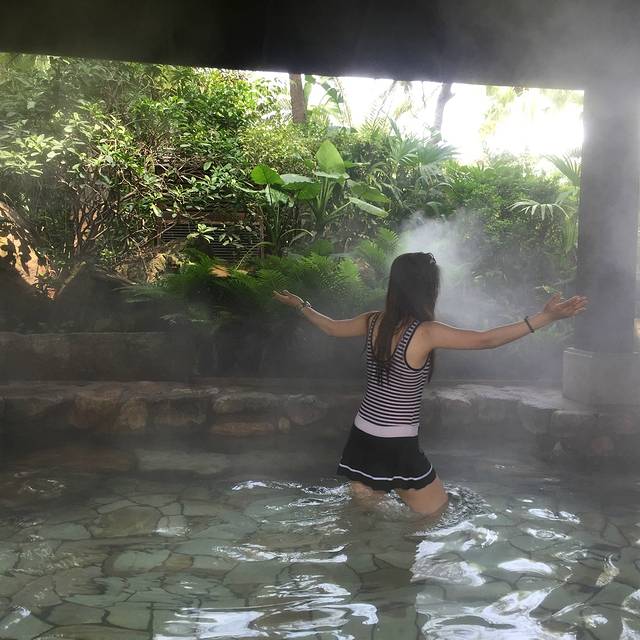 日月谷温泉里面一个可以放雾气的池子,放心,水是热的