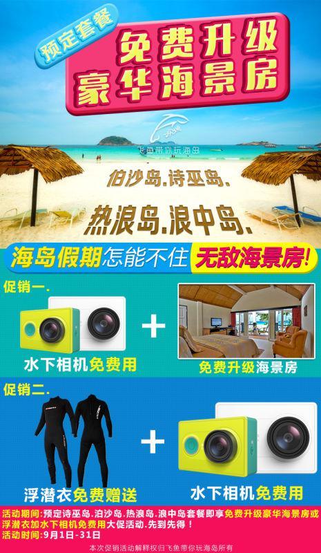 我是在马来西亚的诗巫岛学习的潜水证(OW),至于为什么要选在马来西亚,这个在下文中有介绍!决定好目的地之后,正愁着订酒店这些事情呢,我一朋友就推荐我某宝找到了飞鱼带你玩海岛家,飞鱼家不仅有各种各样的旅行套餐,还有考取潜水证的套餐,我仔细一看,不仅省时、省力,最重要的是还省钱,有需要的小伙伴也可直接关注微信13759526088进行了解。订购的飞鱼4天3晚考证套餐为我解决了不少烦心事(4天3晚OW考证套餐包吃住+海景房+免费的水下照片拍摄),说到这儿,在介绍一下我订购的这个飞鱼考证套餐,4800全包(包接送,考证,度假村入住等等)!是不是很划算呢?而且九月份飞鱼家刚好有一个活动,简直不要太省钱,直接看下图吧!在这段时间想要去学习潜水的亲们可要注意了!