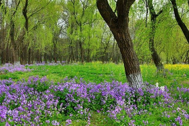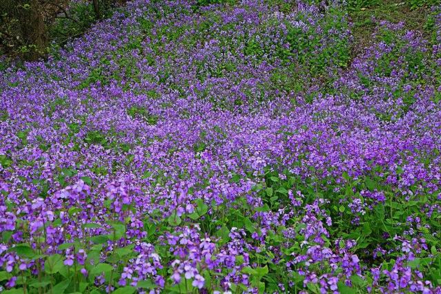 去的时候二月兰开的正盛,大片大片的紫色小花风中摇曳