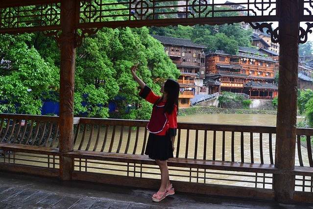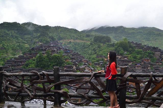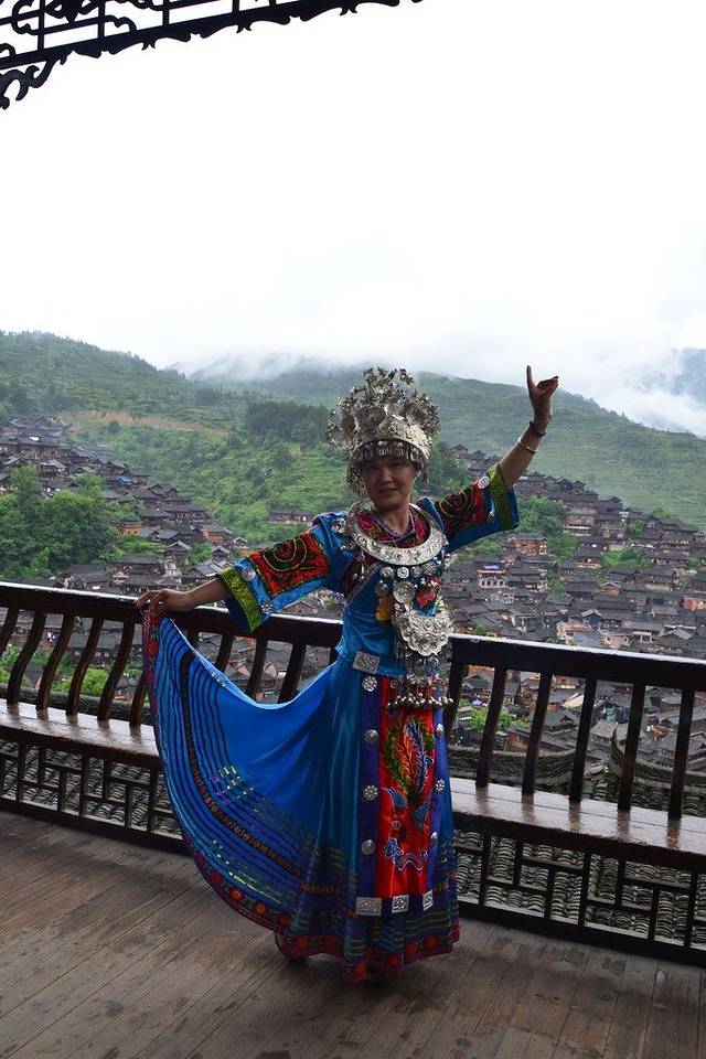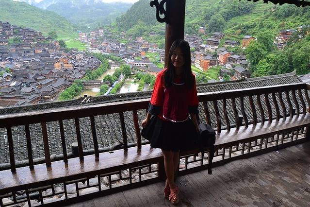 把cosplay的衣服拿来穿了,感觉跟苗寨中国风格还是搭得起来的