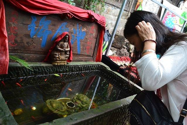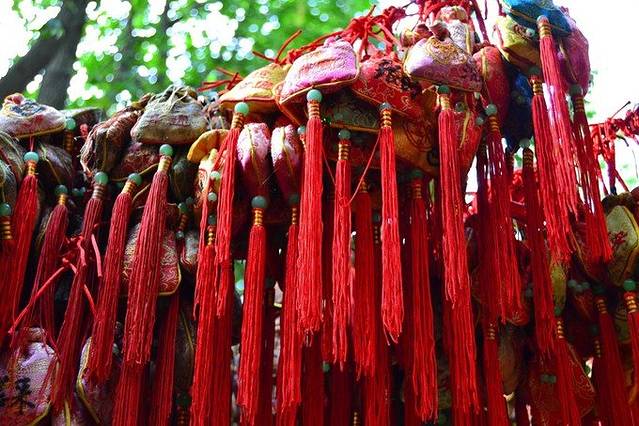 很多年轻人喜欢把荷包系在这里,应该是求姻缘的吧