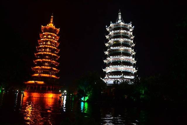 去到桂林市晚上了,住在如家,当晚游览了两江四湖