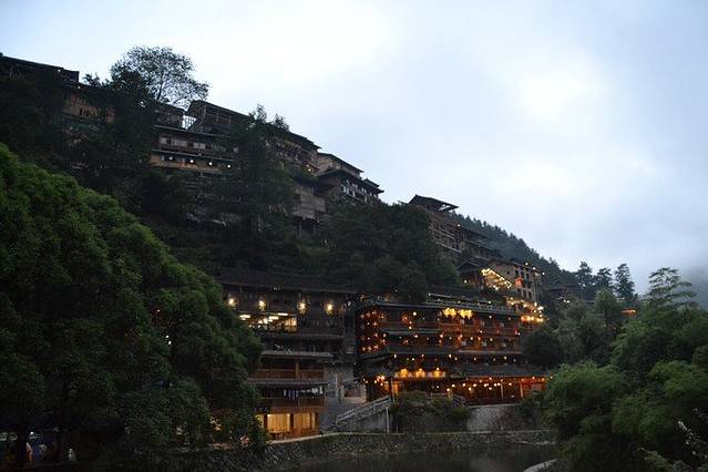 千户苗寨的夜景还是很漂亮的,行李少的话可以住高一些,看到的景色也会漂亮很多