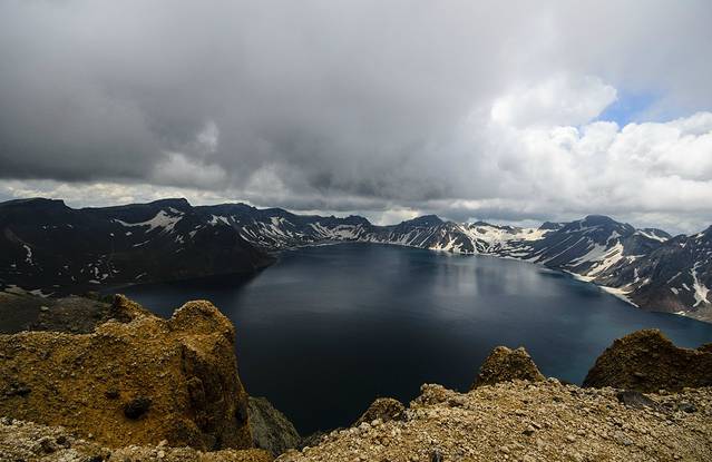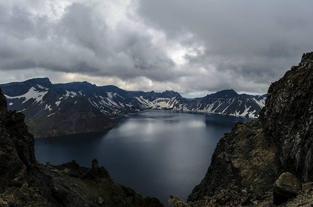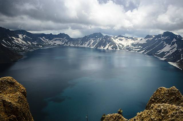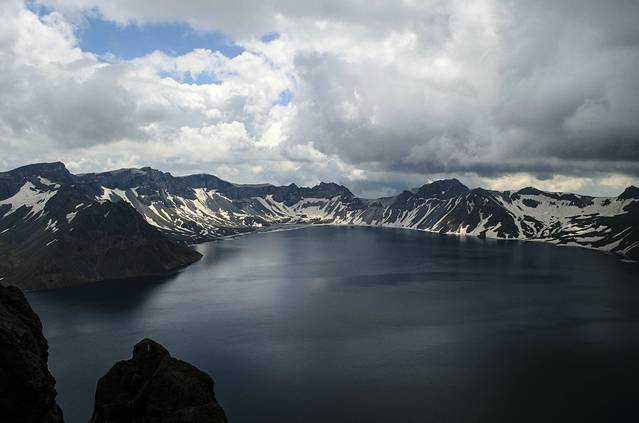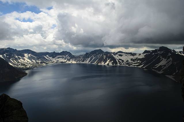 天池镶嵌在长白山群峰之中,站在山顶,遥望天池,看似伸手可及实则神秘莫测,未曾听说有人下到湖面探险的故事,水怪的传说倒是略有耳闻。