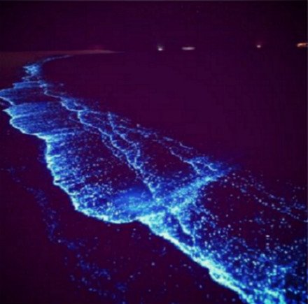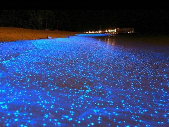 如此梦幻的蓝一直吸引着我们,但是与它相遇的地方离我们甚远,无法接近让我们都很是遗憾。直到后来一次偶然的机会让我们和蓝眼泪的相遇,深深引起了我们对蓝眼泪的向往与热爱。那是一篇描述作者在马来西亚亲身感受到蓝眼泪的文章,被神秘梦幻的奇观——蓝眼泪所吸引,心里很是向往。传说中的蓝眼泪是美人鱼心碎的标志,是她滴落的泪水散落在大海中形成的。而百科知识中告诉我们,"蓝眼泪"是一种在海底生存的微生物 ,因为细小如沙粒,所以英文称为blue sand。它是靠海水的一种能量生存的,但是随着海浪被冲上岸时,离开海水的蓝眼泪只能够生存少过100秒,随着能量的消失,蓝眼泪的光芒失去,它的生命也就结束了。
