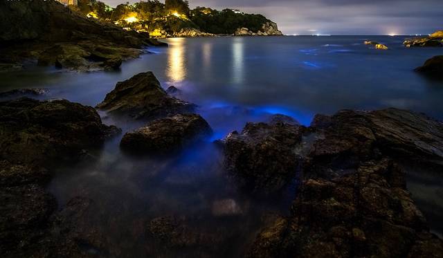 就在我们都快要失望的时候,一阵浪打过来来到海滩,闺蜜突然扯我袖子让我快看,海浪里隐隐发着蓝光,但不是很清楚,要蹲下来用脚打打海水,才能看到一粒粒的蓝眼泪。真的太幸运了,期待了那么久,终于还是看到了。用手抓一把海水,看着蓝眼泪在手里流过,享受这短暂但惊心动魄的美。