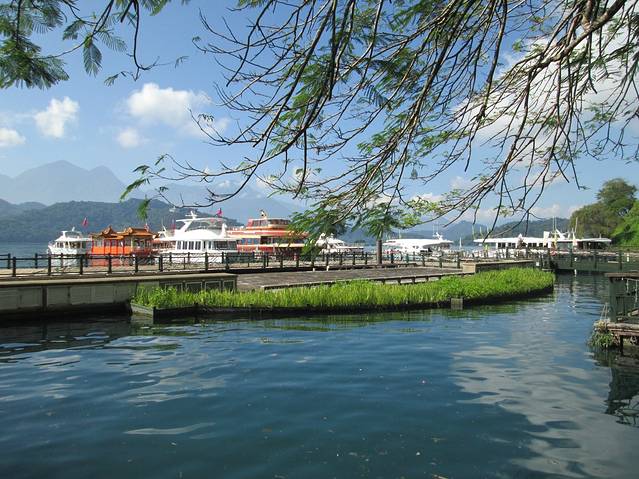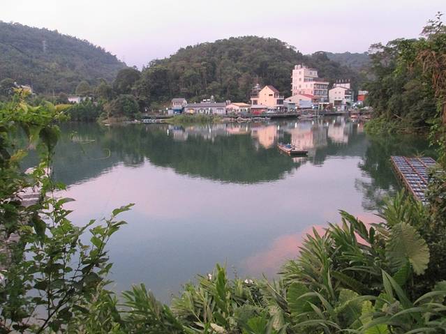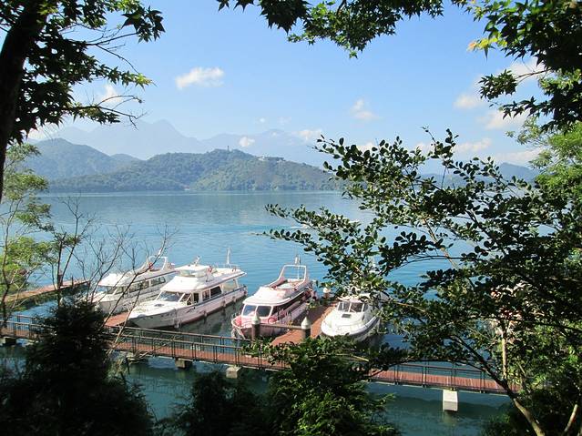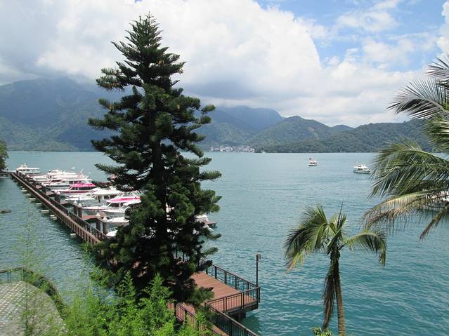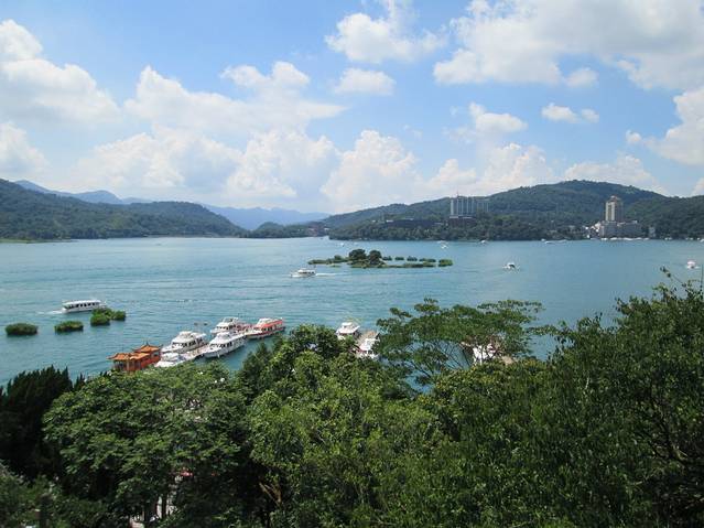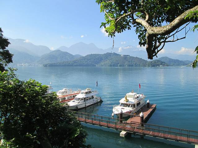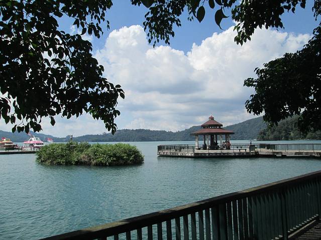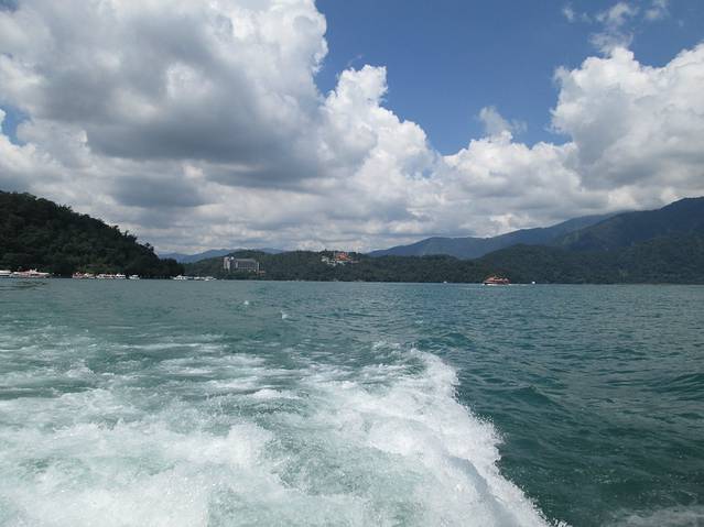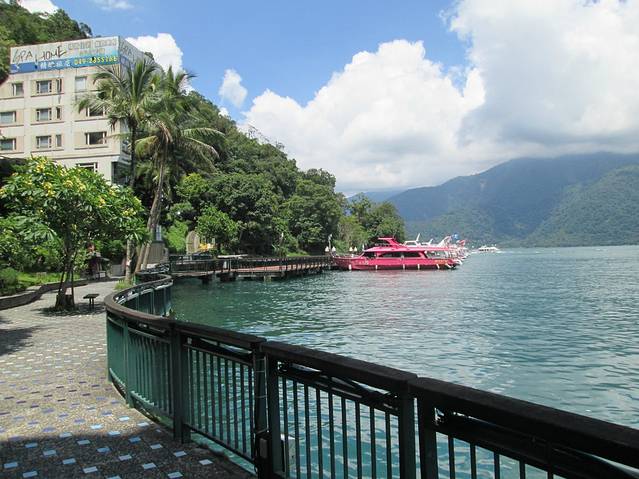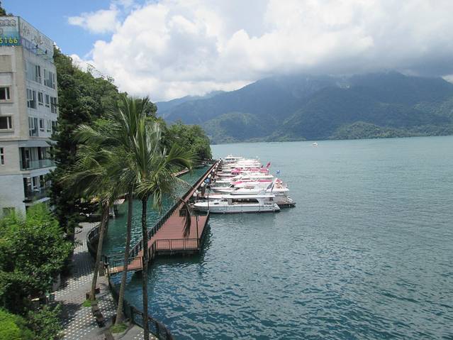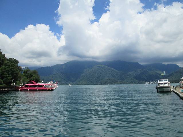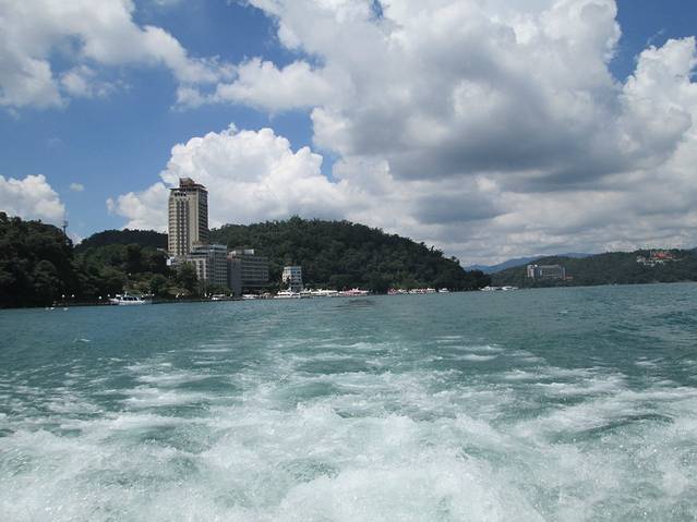 游览日月潭的方式多样又实惠,主要有4种:1,游船环湖登岸游览,最惬意轻松的。2,坐15元的环湖公交,沿途站点随意上下游览,实惠。3,环湖骑行,浪漫又休闲,但每天要40元,偏贵了。4,环湖徒步,都有步道连接的,健康又深度,可只选择走一段。俺体验的是前后两种。俺一直以为日月潭风光较普通,名过其实,原来——国语:蓝天白云下还是非常秀丽迷人的!——台湾语:真是好美好美哟!我好喜欢好喜欢哎!好开心好开心耶!——东北语:这旮瘩忒美了!粤语:真系好鬼死靓架!涵碧步道是日月潭最知名步道,因为是某人曾经的度假之地,仍保留有纪念亭、登船码头、住宿地等遗址。就在水社码头旁,俺当然不错过游览啦!俺特意在日落西山的傍晚时分再度前往湖畔漫步!沿路一边是林茂草丰,一边是湖光山色,游人稀少、宁静空灵,果然是条不错的生态休闲步道。夜色降临突降小雨,难道预示明早将出现日月潭奇景之一的晨雾漫湖?敬请期待……