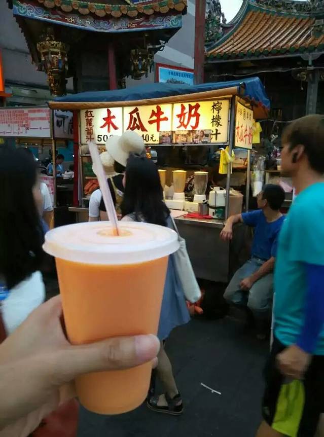 一日游大巴可送回西门町,正好逛街!据称是年轻人爱逛的时尚潮流汇聚之地,其实类似于俺们的北京路与上下九,同类街区见太多了!对俺没啥吸引力!一直徒步到不远处的龙山寺(艋胛寺),沿街都是骑楼老街。俺今晚的青年旅馆也正好位于这里的“广州街”!俺是广州人当然要支持啦!华西街(艋胛)夜市——台北四大夜市之一,就在俺的青旅附近,当然顺逛啦!的确有点失望,夜市只是更热闹与更多选择而已,出品质量则是良莠不齐的,其实街头偶遇的特色小餐厅才更值得品尝,味道与卫生都更有保证。来台北当然要尝尝珍珠奶茶8元,味道与广州差不多。卤肉饭小碗5元,仅是图名气大,卤熟烂的五花肉浇汁在饭上,真不爱吃!炸鱼胶2元1 条,不知为啥叫“黑轮”?还挺香。“甜不辣”8元,甜酱拌杂锦肉丸,感觉都是面粉丸,味道也不爱吃。仅吃几样就饱了,即使再多美食也只能看了。