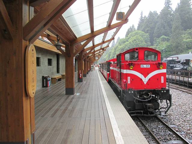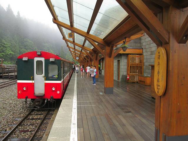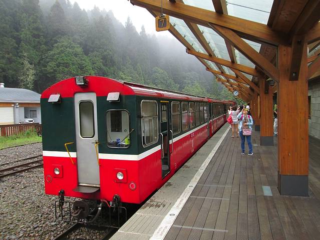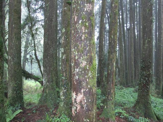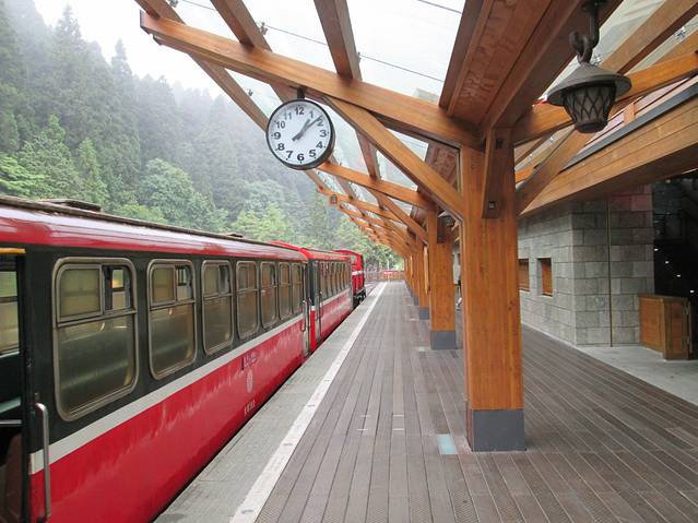 阿里山门票自驾游客60元,乘坐客车(公车)游客30元!五折啊!支持环保、保护贫苦人真好!当然是首冲着森林小火车而来啦!分两段搭乘绕一圈,每段20元仅7分钟就到,太短啦!两段之间是原始森林徒步区连接,俺只搭乘头段,然后一直徒步回去。阿里山森林小火车可能会有很多人想坐吧?告诉你一个事实,其实俺们大陆东北至少就有两处,1、海林市,是为方便接送伐木工人上下班的。2、内蒙的海拉尔市即呼伦贝尔,俺坐过,终点是森林小城莫尔道嘎,绿皮车故才几十元9小时!还有就是斯里兰卡也有。都比阿里山要更有趣、时间更长!只是人家会做宣传而已。最令俺震撼与新奇的不是名气最大的森林小火车,而是原始森林里的松树群,都是非常高龄的,感觉一群天兵神将似的立在天地间,都快成精了吧?今天下午是天公最不作美的一次了,刚到阿里山坐上小火车,就雷电交加、暴雨倾盆!气温本已凉爽,顿时再急降,弄得俺浑身溅湿、手脚冰凉!幸亏吃了一碗热辣辣的竹笋蘑菇汤10元,意想不到的香甜啊!不知放了啥味精?后来在别处又吃了一碗,却要12元!气人!