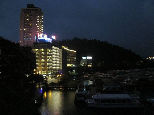 旅游区物价贵啊!午餐——什锦汤24元(肉丝、鸡腿菇、香菇、金针、黄瓜、竹笋、面粉杂丸),米饭3元太小碗,味道还可以,偏贵了。芋圆10元,味道与俺们差不多,算便宜了。苹果香蕉20元3条——太夸张才不吃呢!无奈晚餐还是回到午餐那家餐厅,软骨饭16元——就是带软骨的卤肉饭而已,俺要求饭菜分开放未果,便吸取在台北的教训与经验,预先要求不要浇卤水汁!才感觉好吃些了。肉的份量很多,还配有俺至爱的竹笋,还不错!