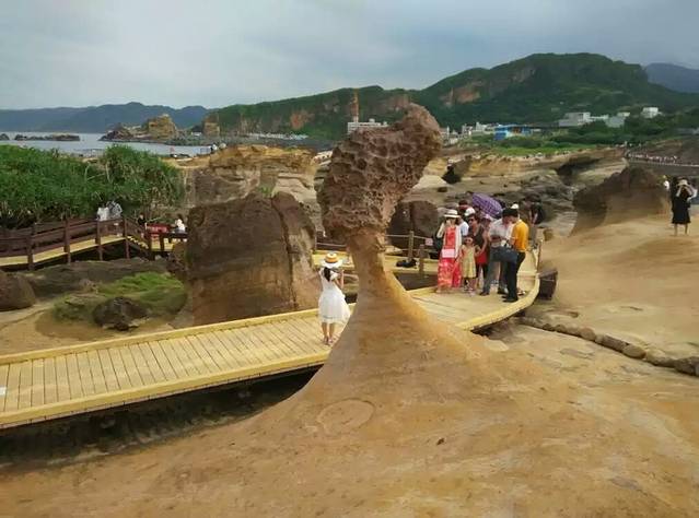 台北的国光客运汽车站原来就在台北车站的旁边,却又叫台北西站,莫名其妙!害俺还到处去找,原来近在咫尺,满大街逛可热疯啦!为了避免在景区吃午餐贵,俺特意在台北车站附近老街寻找特色美食,肉羹米粉11元,肉羹就是俺们闽南的风味,爽滑的猪肉泥团而已,汤甜粉滑,还不错。每天晚上22点前15分钟一班车前往著名的野柳地质公园,19元1.5小时。野柳公园在台北以北的新北市远郊,收费16元不叫门票费,而叫环境维护费!挺好听的!起码不像俺们的变态高收费!既然是台湾标志性景点,当然不能错过,就为了看一眼神奇的女王头嘛!原来还有好几个都有点像呢。