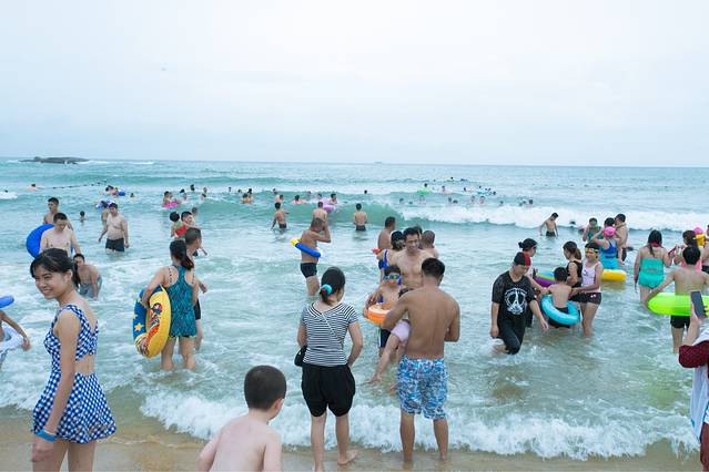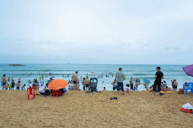 这里主要的游玩项目是海滨浴场,可能是因为今天下雨的原因,人不会太多,东西两边只开放了一边的浴场
