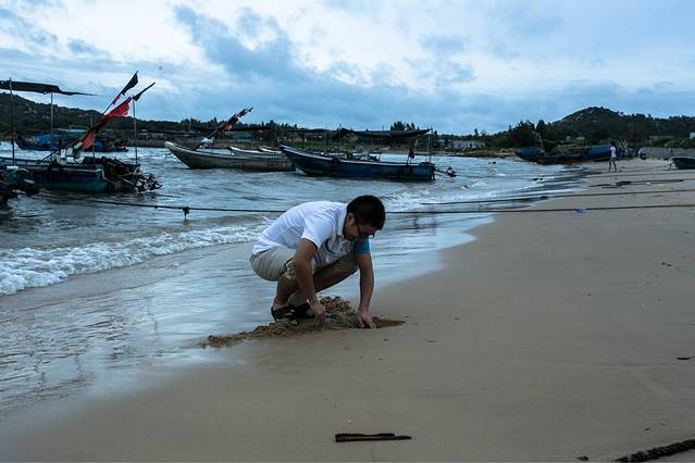 这里沙滩比较大,而且沙子比较细,很适合给小朋友们玩