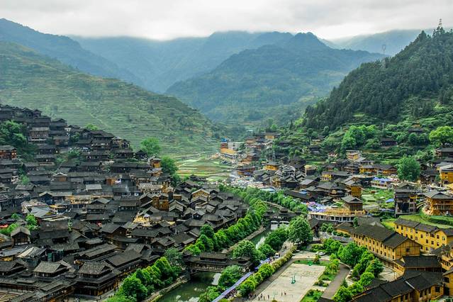 千户苗寨因有1000余户人家而得名,西江的苗寨算是贵阳比较出名的苗寨了,他的名气来自于美丽的山色,来自漂亮的苗寨建筑,来自好客的苗寨人,来自于苗族漂亮的银饰和精心绣好的苗服。