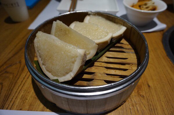 拾味馆的人很多,环境非常好,服务很赞,有免费的小吃和鹧鸪茶。最著名的是它的排骨汤,用莲子红枣陈皮枸杞等熬制,汤汁鲜美香浓。排骨汤可以点别的菜,煮成火锅汤。很大一只的排骨肉虽然不多,但是非常精致,肉很嫩,可以用吸管吸其中的骨髓。椰子饭也是海南的特色,将米饭填充在椰子壳中然后蒸好,椰子的肉汁都会沁入,味道非常香甜。东山羊,有点少但也很嫩。可以将柠檬、金桔挤在蘸酱中,味道非常清新爽口。拾味馆在全国各地都有分店,五星推荐。