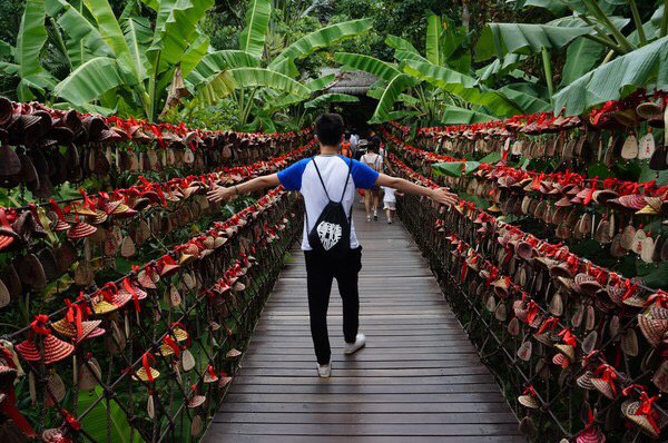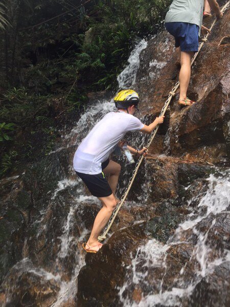 从大东海去呀诺达可以在银泰酒店一层订好往返的大巴座位,必须提前一到两天去订,要不然早上发车根本没座。大巴车明天早晨八点从银泰酒店发车前往,下午从景区发成回到银泰酒店,非常方便。选择的是戏水+雨林的路线,作为年轻人必须要体验的“踏瀑戏水”,途中需要在教练的带领下爬山涉水,不仅有荡绳过河、踩浮在水面上的轮胎过河,还要逆着瀑布抓着绳索往台阶上爬,需要非常需要身体的协调性,但是真的体验到运动的乐趣。需要戴头盔换草鞋,并且把包里的贵重物品存到箱子里,玩完取出来即可,完事还有冲淋间可以换下湿透的衣服。雨林区就是跟随着导游的讲解,介绍了一些非常罕见的热带植物,如见血封喉黄花梨等。中午景区有养生自助餐,但也可以选择自带,经济实惠。