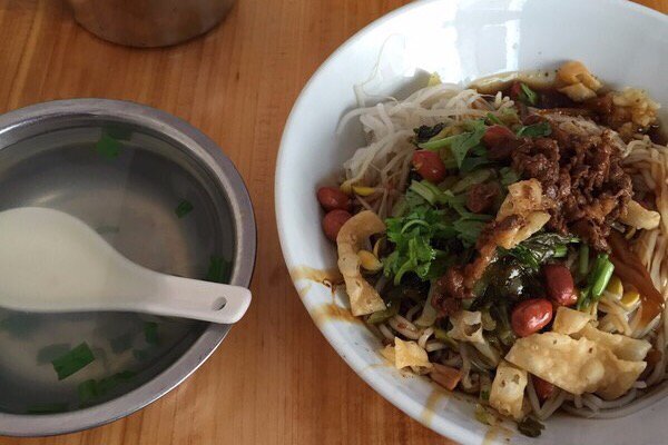 总店地址在海甸岛人民西里176号,是一家不大的老字号店面,虽说环境有些简陋,但是历史久远,味道还是一如既往的正宗,老板说得一口流利的海南话,故这里的海南粉是最具特色的小吃。个人觉得海南粉比抱罗粉要好吃,原因是用大米、番茨粉为原料制成米粉,加上老抽、蒜泥、花生油、豆芽、牛肉丝、花生米、芝麻、脆炸片、香菜、竹笋及酸菜等辅料,拌制而成。多味浓香,柔润爽滑,加一点辣椒油则更起味,赠一小碗热腾腾的海蚌汤掺和着吃,回味无穷。人均10元就吃到了最正宗的海南粉。