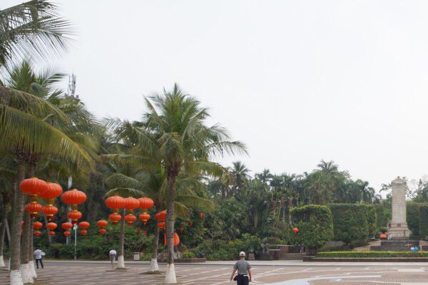 海口人民公园是海口市目前最大的公园,位于市中心,从空中俯望海口,人民公园犹如楼海中浮起的翠绿蓬莱。公园正门前有东湖和西湖,如海口市区的一双秀眼。全园按功能分区划分东西湖游览区、烈士纪念区、热带植物区等等。海南解放纪念碑屹立在在公园正门入口处,为纪念长期坚持琼岛革命和渡海作战而英勇牺牲的烈士。园内现有热带、亚热带植物很多种,每一颗树都会挂有什么植物的标牌,也可谓是一个热带植物园。入口处有一块椰城的刻字,也是海口市别称。公园内很多老年人在锻炼,也有很多家长带着小孩在散步。