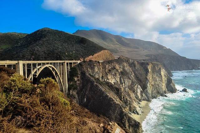 比克斯比河大桥也被称为“比克斯比桥”,坐落于加利福尼亚中部的大索尔海岸,距离旧金山190公里,是一个钢筋混凝土空腹拱桥,同时也是加利福尼亚州最长的混凝土拱桥。1931年开始建造,1932年完工并通车,长218米,宽7米,高85米,建成之初是世界上最大的单拱水泥桥,直到今天,一直是游人比较喜欢的景点之一。它是旧金山湾区2个最大单孔桥之一,一是金门大桥,另外一个就是它,这个宏伟壮观单拱水泥桥被认为是美国最漂亮的大桥之一,也是美国西海岸最上镜的大桥之一,已经成为加州的显著地标。