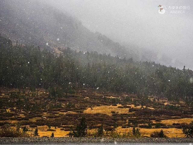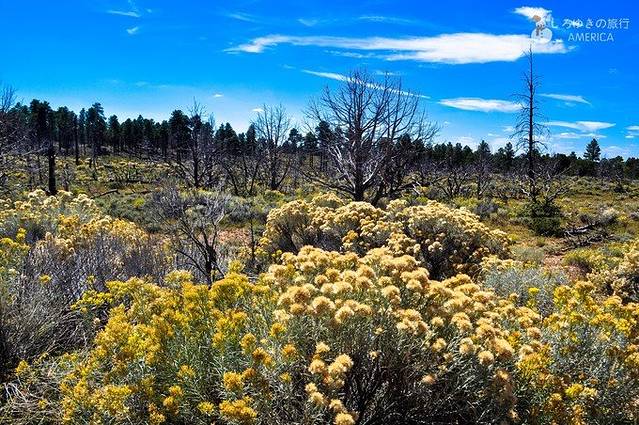 逛完博物馆,回到游客中心买了纪念品,然后开车上路,一路向公园东门开,大约有40km左右~一路上也有不少观景点,我们只随机的看了两个~一个是这个point,看到遍地的小黄花,我直接就冲到停车带了~~哈哈