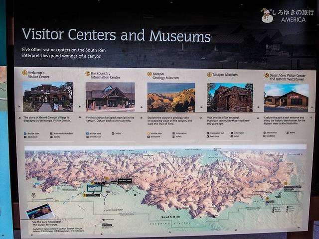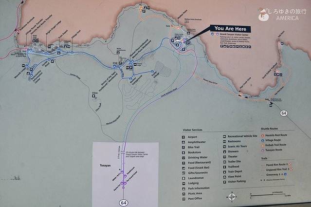 这张图很清楚的显示了4条线路~~我们昨天只玩了yaki point,今天要走一下最经典的mather point,当然还要先把车停到游客中心再坐巴士~