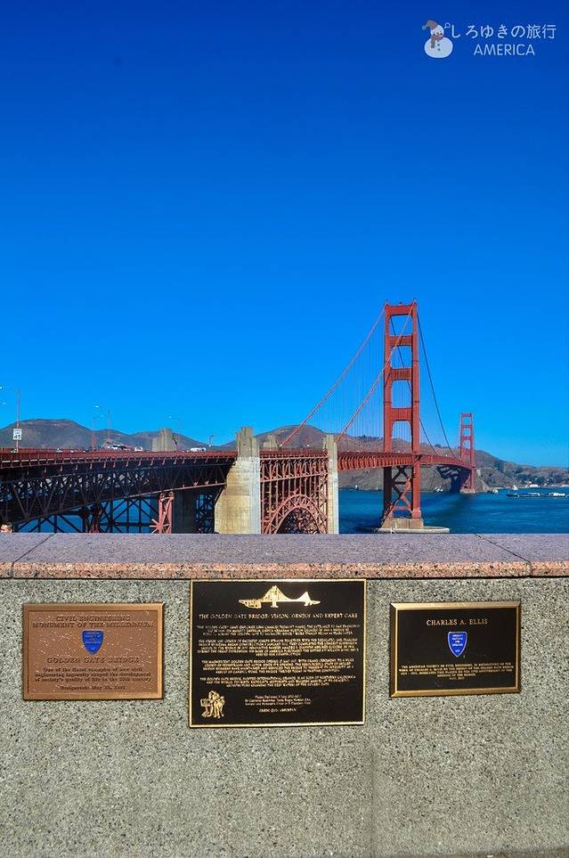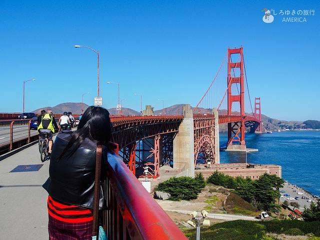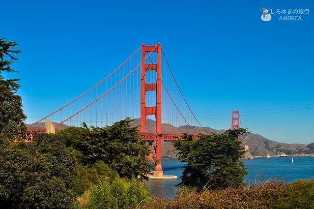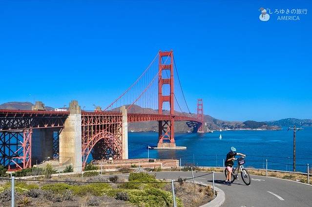 旧金山要塞公园,位于旧金山市的西北角,占地近1500英亩,是18世纪时控制湾区的军事重地,目前还保存有古军方宿舍、炮台、医院、教练场等遗迹,供人凭吊。沿着海湾走,就抵达金门大桥旁的展望点,在这里立有一个金门大桥钢缆断面的标本,供游客参考。钢缆的直径达36又3/4英寸(92.4公分),金门大桥全长约1280公分,全靠南、北各一个桥墩及钢缆支撑,曾是世界第一长吊桥,并被视为工程界的奇迹。