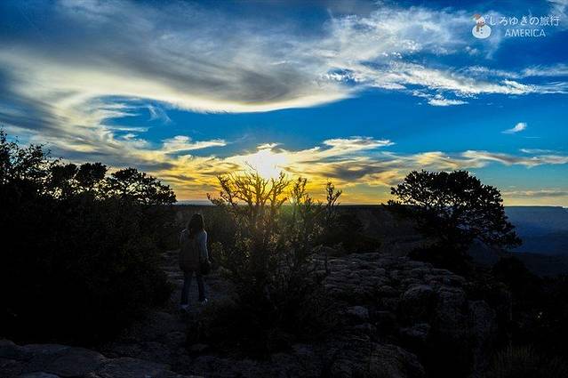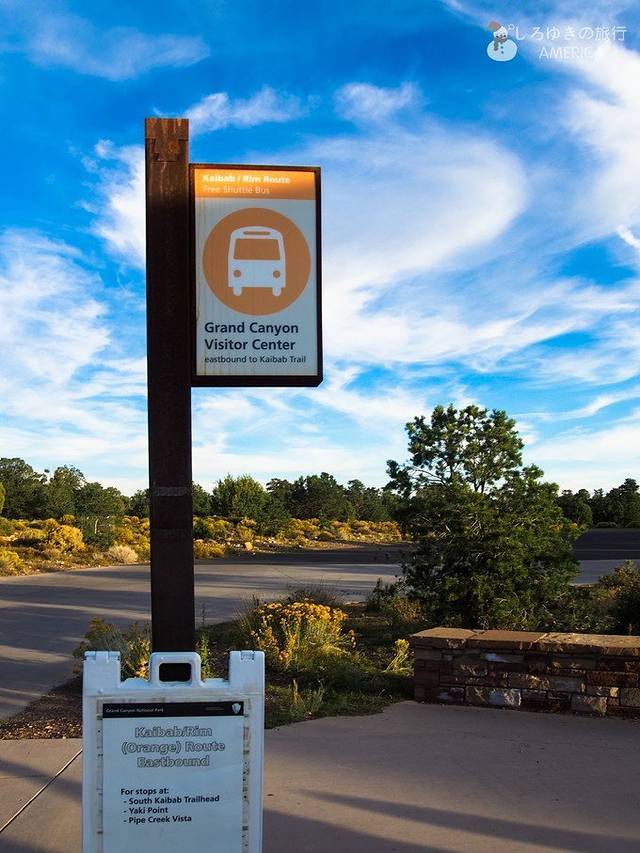 大峡谷看日落较好的观景点是Yaki Point,我们直接从游客中心坐上橘色线路~