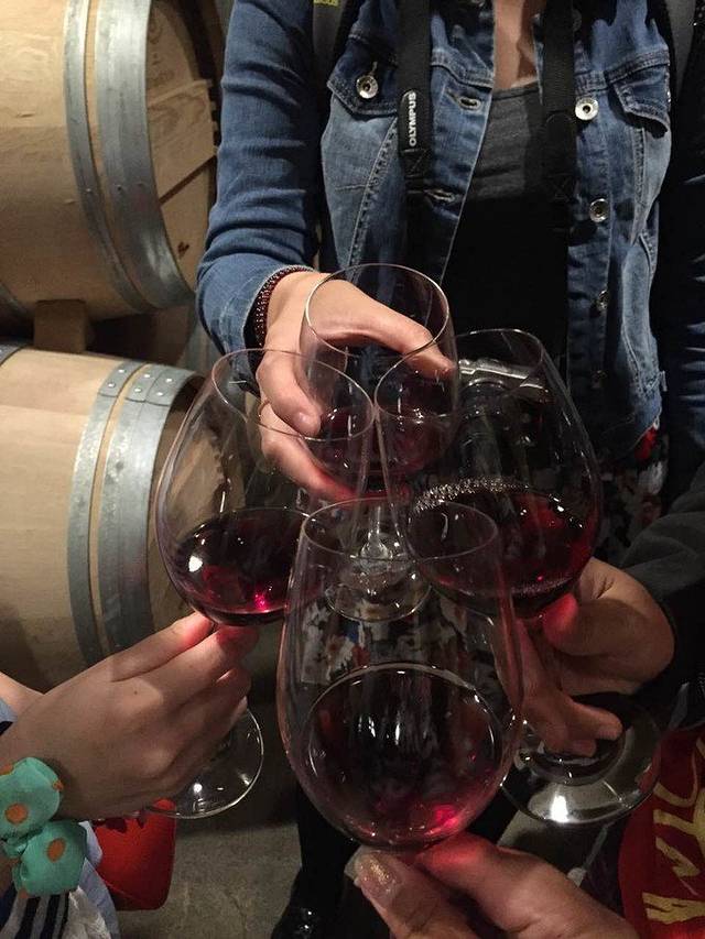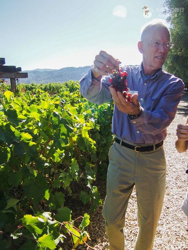 向导是个萌萌的老爷爷,还摘了葡萄让我们吃~哈哈 这里的葡萄是真正的纯天然啊,甜到发指。。。。先给我们来了杯白葡萄酒品尝,可惜我开车不能多喝,就抿了一小口~ 剩下的自然都归了老妹,喝嗨了~