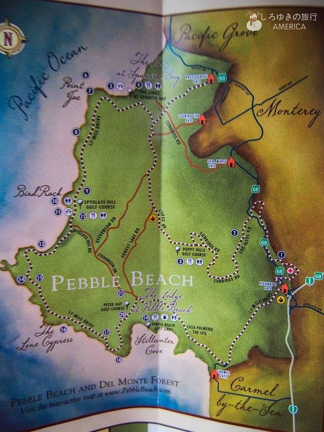 17 MILES顾名思义就是这条风景线有17英里长,我们是从1号公路 东边1号入口处进入,逆时针绕一圈从南端通往卡梅尔小镇出口出~~一路上遇到觉得好看的点就停下看,一般的直接略过~
