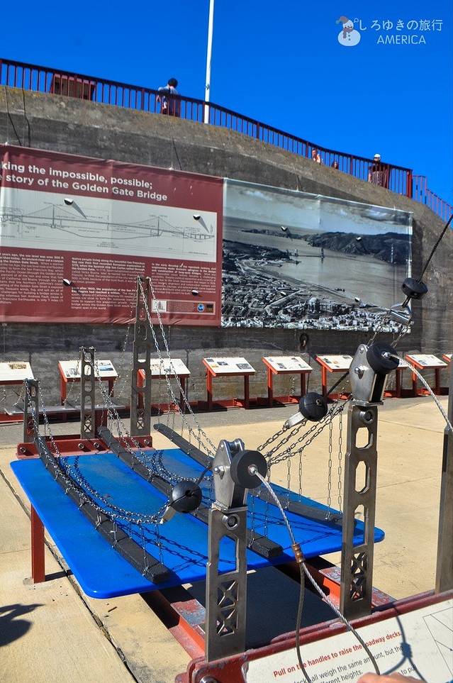 这边还有金门大桥的建造历史,结构原理等介绍,很有趣,这个小实验是讲述了为什么桥梁的钢塔要建这么高~