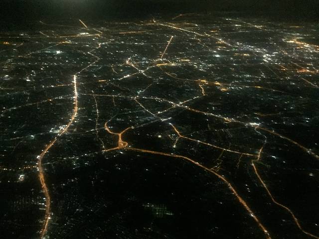 飞机到了曼谷 真会在空中飞行二十多分钟 曼谷真的是好大好大。。 电网图那样