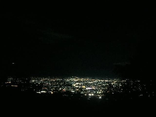在宁曼路吃了饭,就准备上山。有打算自己飙上去的,一定记得多带衣服啊,超级超级冷,不然飙上去后,下来就感冒了,不要问我怎么知道,因为我感冒了。晚上山上已经没有多少人,上山的时候注意一点就好。在这里你可以看星星看夜景,最好后座还有一个女朋友 那就很浪漫了。