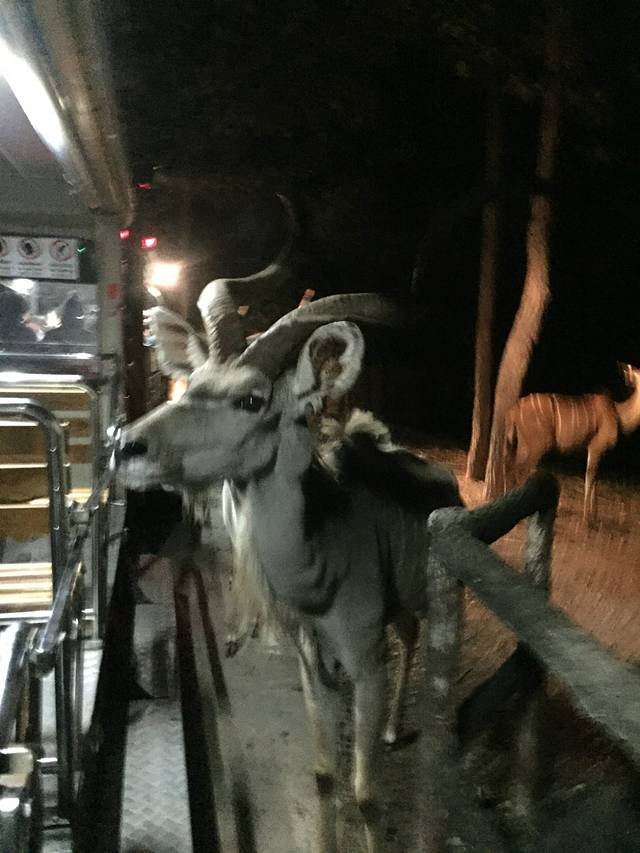 夜间动物园可以坐像侏罗纪公园那样的长条车,走一站停一站介绍观看动物。真的超级有意思,就是记得坐前面吧。或者边上都可以,这样十分方便喂养动物。还有一定记得带食物,因为在路边会有长颈鹿什么的要你喂养,但是你没有食物。车子很快就会开走。。