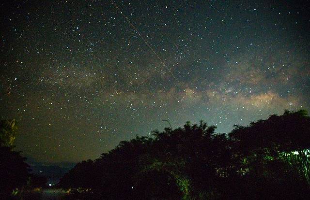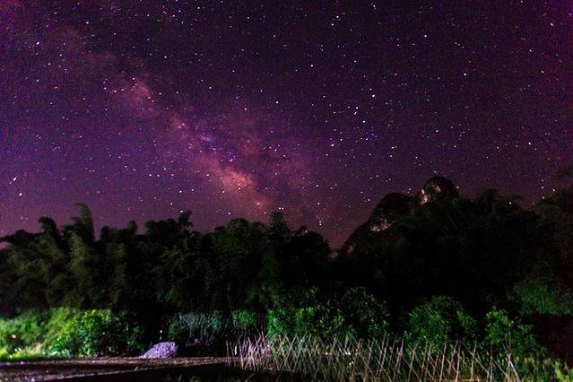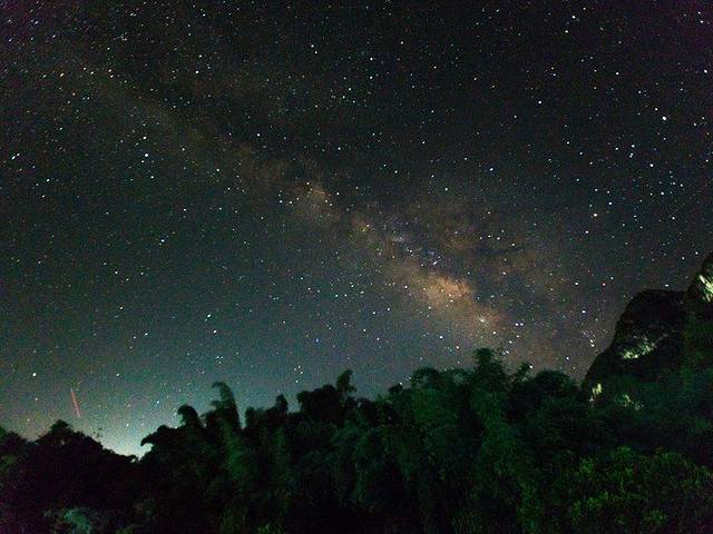 从山上下来后天已经黑了,回住处吃了点东西,大概9点多钟的时候,打开窗户一看,果然天上好多星星,兴奋的抱着相机和脚架就出来拍,果然有银河!!!