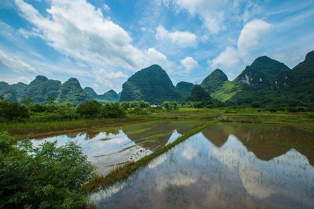 骑行所见的风景不亚于坐竹筏,而且可以运动,可以骑双人自行车(虽然有点累)我们租车一天20元,电瓶车的话一天50元,骑起来比较快,但还是觉得自行车比较有feel