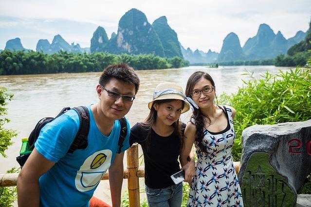 从阳朔汽车站花8块钱,到兴坪大概40多分钟;因为当时我们已经热的不行不行的了,上车就说怎么没有空调(车子确实有点破),旁边一个小妹妹笑着看着我们,我打量一下,她竟然穿着牛仔长裤!!!"你不热吗?",我问,她笑了笑不说话。车子开了几分钟,小妹妹问道:你们是来旅游的吗?然后话夹子就被打开了,她刚刚高考结束,是当地人,然后说愿意给我们当导游,我们当然欣然接受啊