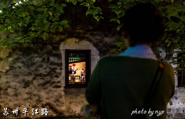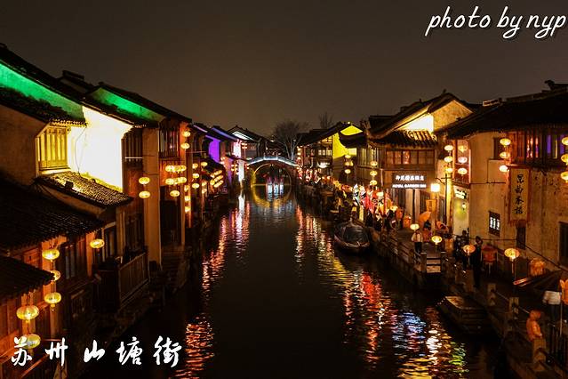 去平江路或山塘街最好都在晚上去,夜景比白天好看的多,去山塘街的话可以安排和虎丘一天,白天玩虎丘,傍晚从虎丘入园时的门口向左沿着小巷子一直走,大概半个多小时就能走到山塘街,这里就是七里山塘的路线,曲径通幽,到山塘街时有豁然开朗的感觉。