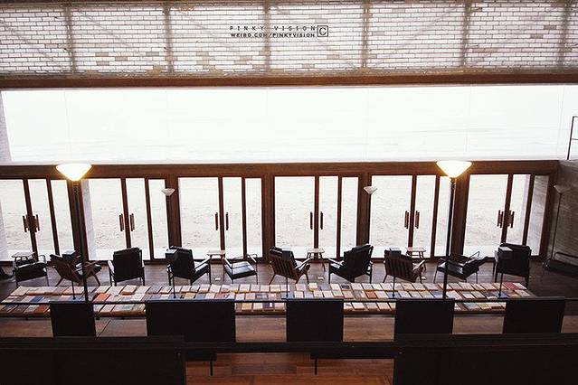这个图书馆每天是要限制人流量的,所以需要提前在官方微信账号上面预约,拿着预约号才可以进去,当然,如果你是阿那亚小区的业主,就是随便进入的啦。我很幸运,来的时候基本没人,所以本不让拍照的地方,我敞开了拍也没人说我。