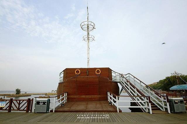 进门是个模拟的大船,上去可以看到鸽子窝公园大概的全景。其实鸽子窝公园不太大,只是因为它位于北戴河的最东端,是个很好的观海上日出的景点,所以比较出名,并且被定为4A级景区。